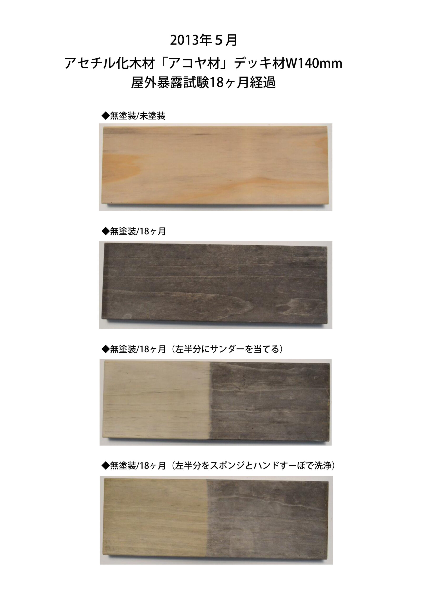 高耐久化天然木材 アコヤ材の経年変化